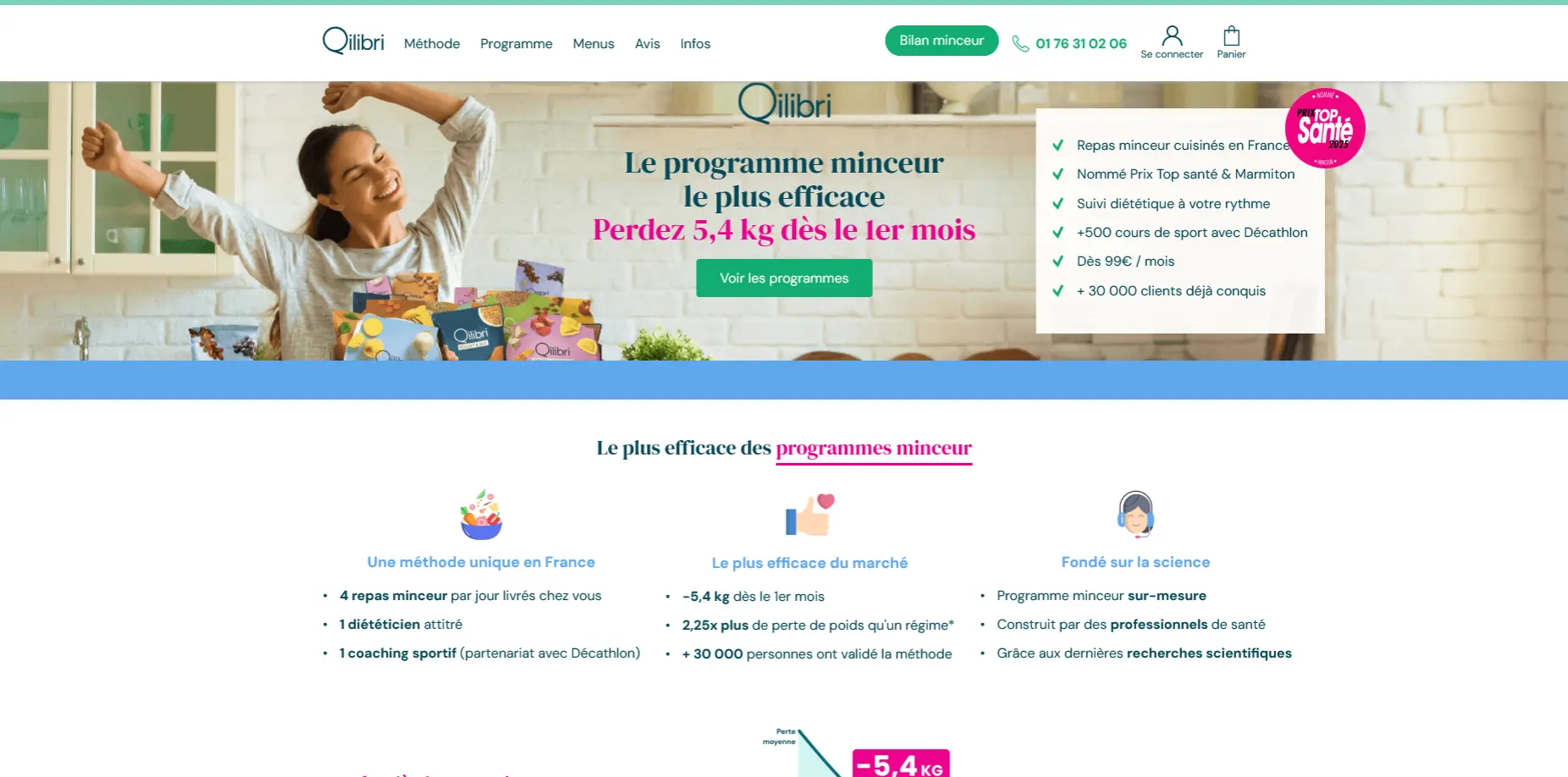 | Programmes disponibles | formule Qilibri Expert (rééquilibrage durable) et Qilibri Boost (perte plus rapide) |